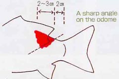 Wanneer er op het lichaam van een grote koi een grote solide tekening is, dan is er niets mis wanneer de witte ondergrond zich uitbreidt van de staart tot aan het einde van de rugvin. Wanneer echter bij een kleinere koi de ODOME te ver naar voor is, zal er teveel witte ondergrond zijn.