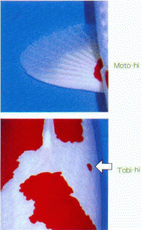 Groter nog is de afkering van bleekrode vlekken, gelijkaardig aan NIBAN-HI aanwezig op de vinnen. Dit soort rood is zeker afzichtelijk wanneer het verschijnt op de borstvinnen of op de staartvin en het is misschien beter dat je koi met dergelijke tekens vermijdt.