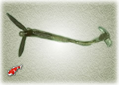 Aan het andere einde(wat dus meestal niet te zien is vanwege het feit dat dit in vis vastzit) vinden we een aparte kop met het hecht orgaan in de vorm van een scheepsanker waarmee zij zich diep in de huid dringt. De wijfjes zijn slank en zijn van 6mm tot 23 mm groot. De wijfjes blijven leven tot eind mei in leven en sterven dan af, en vallen gewoon van de vis af met medeneming van stukken huid en spierweefsel ze veroorzaken daarbij grote gaten. Deze gaten genezen zeer moeilijk, meestal komt er dan een bacteriële of een schimmelinfectie bij wat de dood van de vis als gevolg heeft. De larven lijken op jonge cyclops en zwemmen tot ze een geschikte vis tegenkomen. De parasiet beweegt zich vaak rond zwemmend van gastheer tot gastheer, waarbij hij zich voedt met kleine deeltjes slijmhuid en bloed uit de kieuwen, de schade hiervan is zeer beperkt pas als de vrouwtjes zich vast nestelen in de vis rond de voortplanting wordt er grote schade aangericht. Aan getaste vissen zwemmen schichtig en onrustig rond, schubben kunnen plaatselijk uitsteken, de vis gaat schuren om de parasiet kwijt te raken, waarbij dus ook weer verwondingen kunnen ontstaan. In het laatste stadium vertragen de bewegingen en hangen en tuimelen de vissen.
