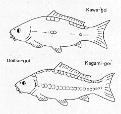 Men beweert dat rond 1830 voor het eerst een KOHAKU met een patroon van rode tekening op een witte ondergrond werd gekweekt. De evolutie zette zich voort en in het begin van het MEIJI-tijdperk werden hoogwaardige exemplaren van KI UTSURI, ASAGI, SARASA, enz. geproduceerd.